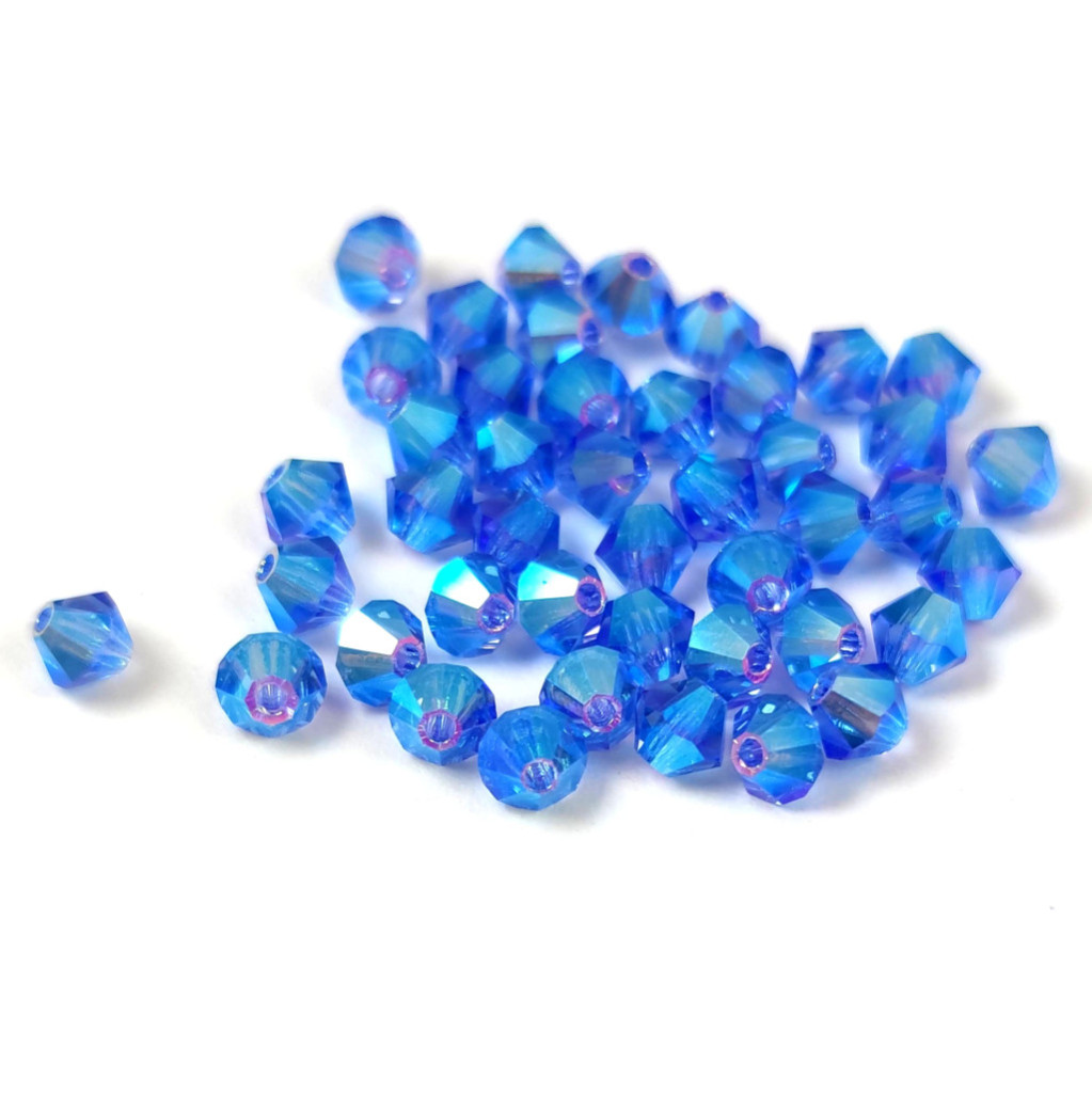 Preciosa bicone gyöngy - Sapphire AB 2X - méret: 4mm - 250db - AKCIOS