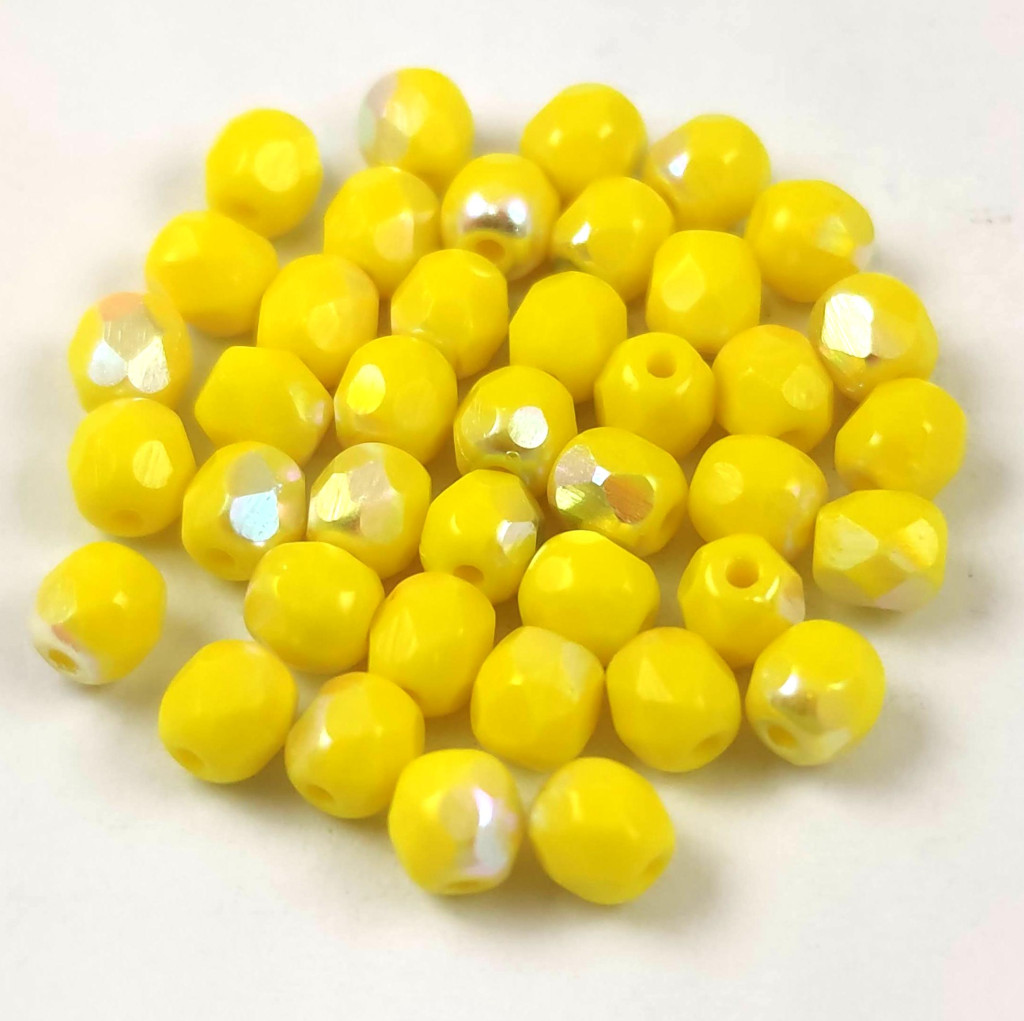 Czech Firepolished Round Glass Bead - Opaque Yellow AB - 4mm